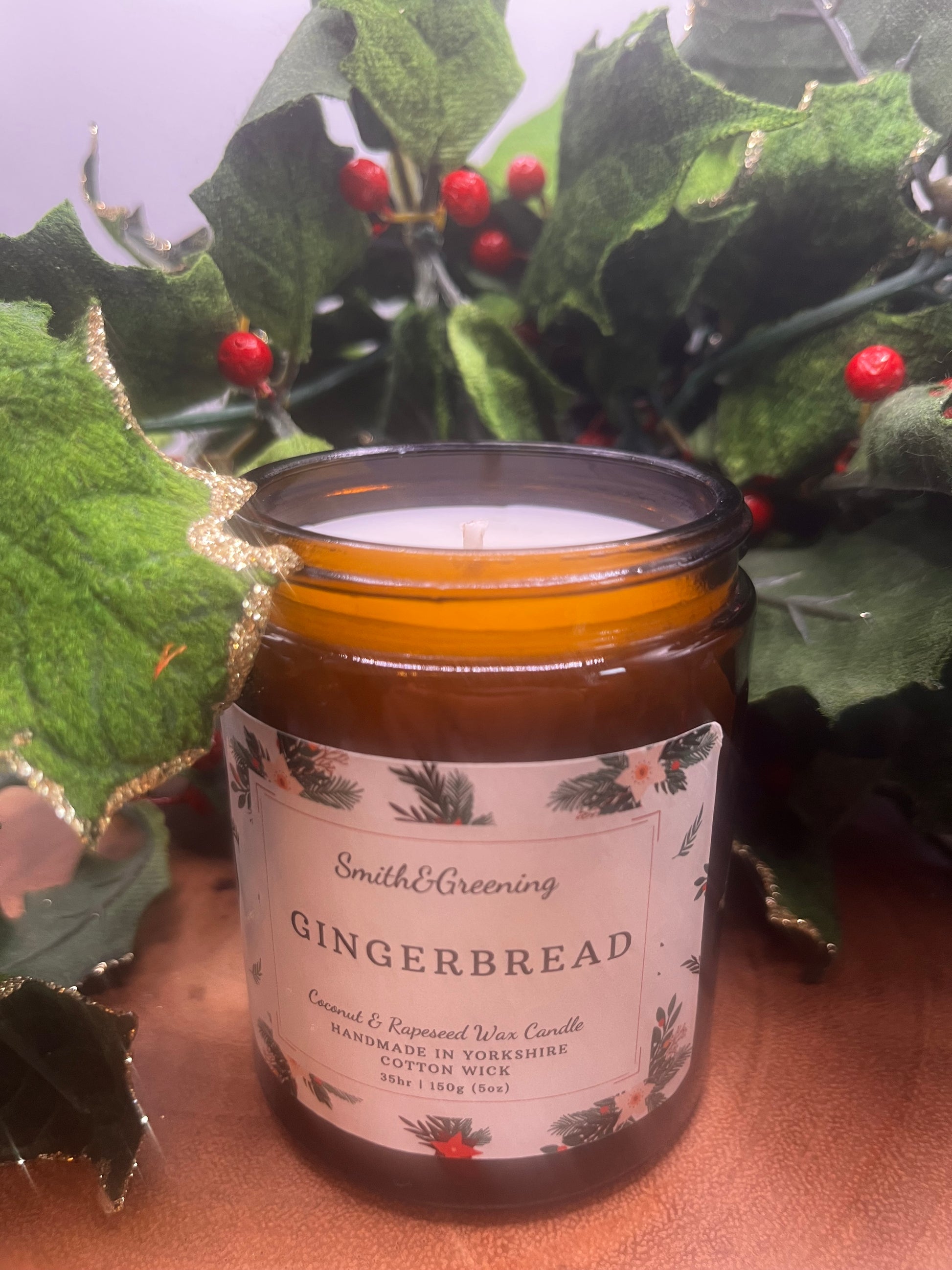 Gingerbread candle hand poured in Yorkshire using natural coconut & rapeseed wax, with a choice of eco cotton or wooden wicks. Scented with a vegan friendly, festive gingerbread fragrance oil with notes of ginger, cinnamon, maple syrup, caramel, cookie & vanilla. Smells just like home baked gingerbread, perfect for cosy winter nights!